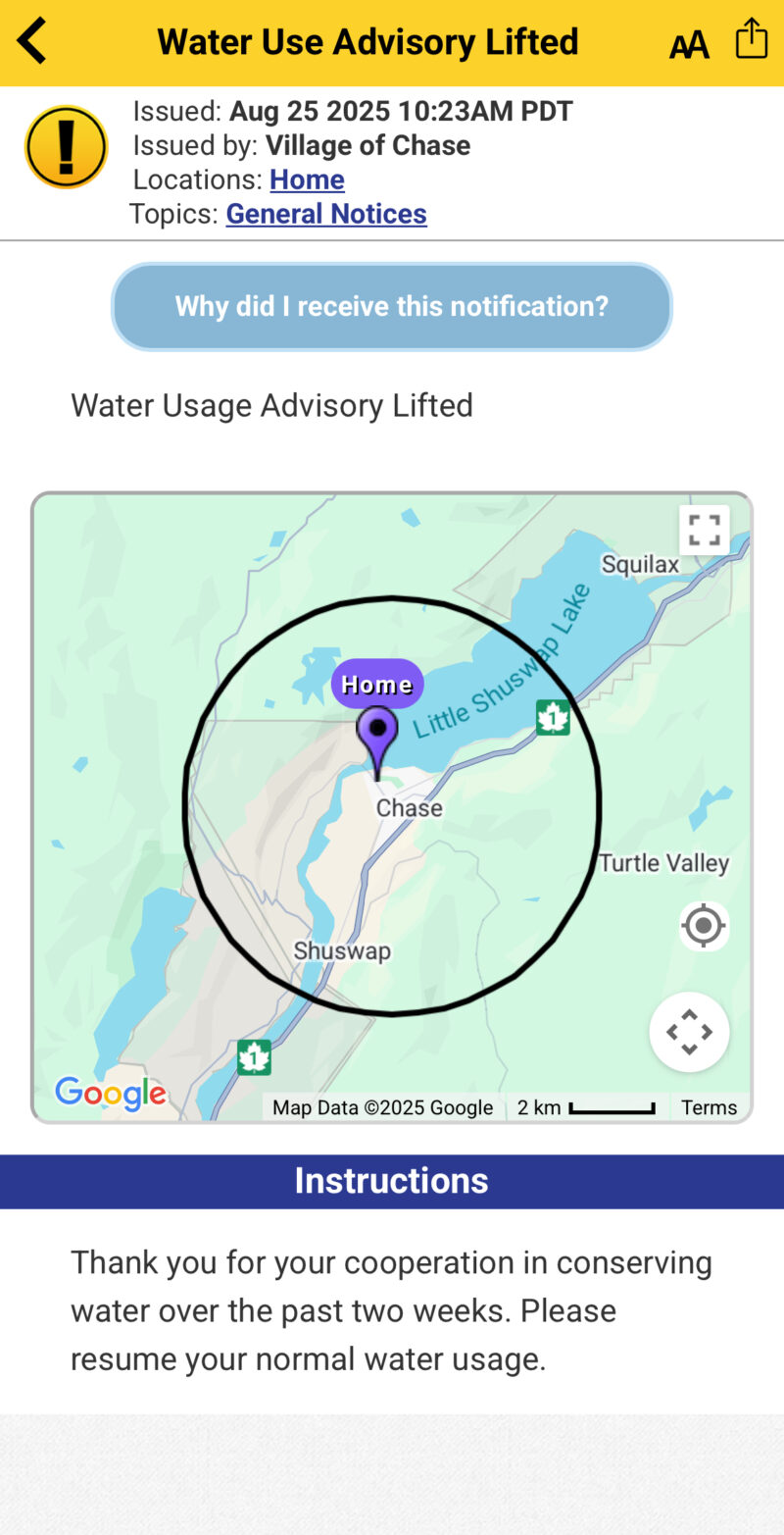 • Landline Phone Users without internet access can call the Village office at (250) 679 3238 (between 9 am and 4 pm) to request to receive alerts via landline phone.